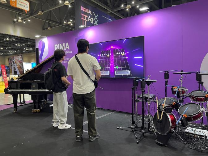 BandMaster is an AI-linked concert-style rhythm action game that goes beyond simple software by synchronizing in real-time with physical AI robotic instruments, such as the RIMA AI piano and AI drums. It provides a highly immersive 'AI concert' experience where players can perform latest K-POP hits alongside robotic instruments using specialized controllers.