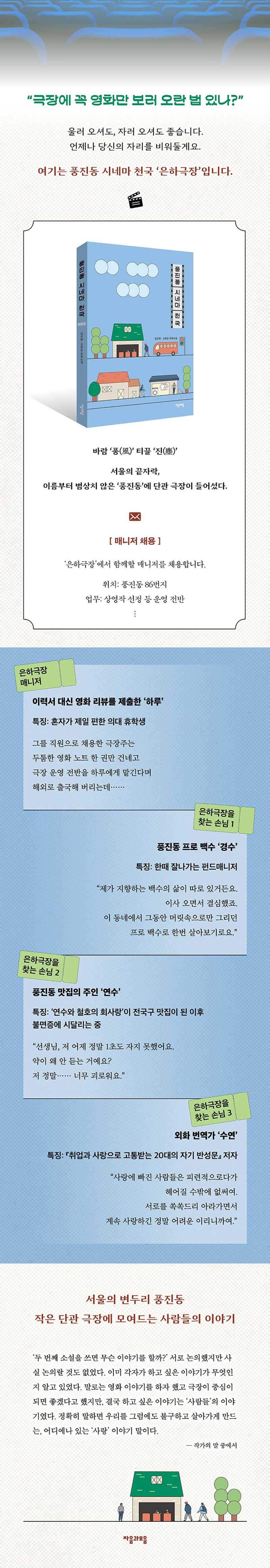 At the far edge of Seoul, in the quietly overlooked neighborhood of Pungjin-dong, a small single-screen cinema opens its doors during the pandemic. On her first day as manager, Haru—a medical student on leave who prefers solitude—is unexpectedly left in full charge when the owner abruptly departs overseas.