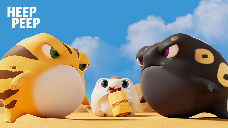 ‘Heeppeep’ is a non-verbal 3D animation that humorously depicts the cheerful survival skills of the desert rain frog, which thrives in harsh environments with its positive energy despite lacking any particular talents.