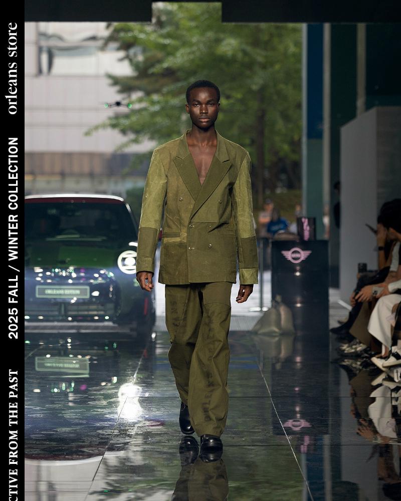 Founded in Busan, Orleans Store interprets vintage not merely as worn or old, but as a “record of time.” By reworking discarded fabrics into new garments, the brand’s creative process embraces both chance and experimentation, conveying the message that “clothing is a record of time, and we wanted to showcase the moment where past and present meet” — a vision that was vividly realized on the runway.