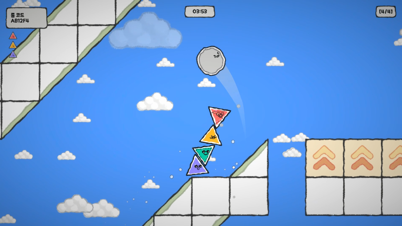 SEMO is a 4-player cooperative game where each player controls a triangle that pushes and bounces circles to reach their destination.
