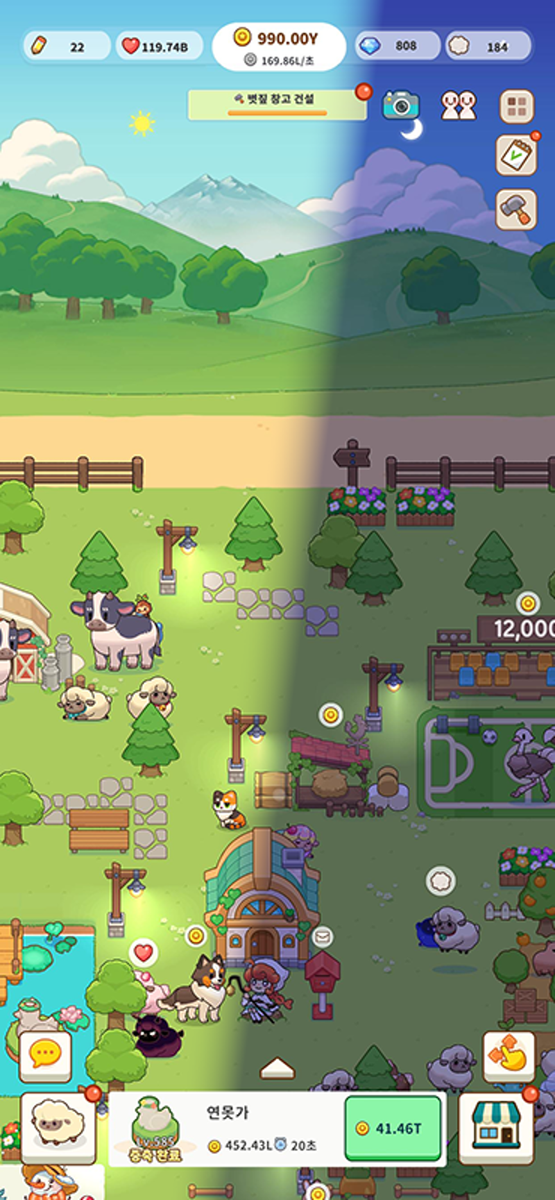 Players grow their farm alongside a young shepherd girl by collecting animals, expanding their land, and progressing through an idle-based system.