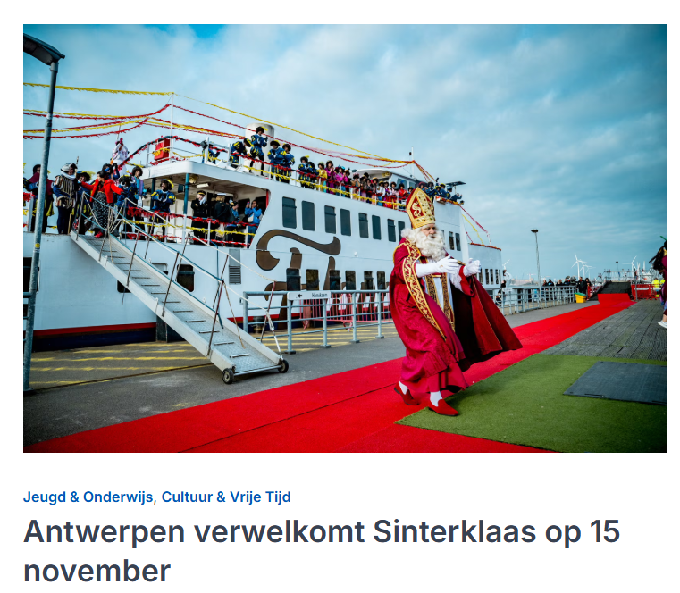사진출처 및 참고자료 - 《앤트워프(Antwerpen)》 (2025. 11. 03). Antwerpen verwelkomt Sinterklaas op 15 november, https://pers.antwerpen.be/antwerpen-verwelkomt-sinterklaas-op-15-november - 《테레비시(TVvisie)》 (2025. 11. 15). Sinterklaas brengt goed nieuws: 'Er zijn dit jaar geen stoute kinderen', https://tvvisie.be/nieuws/belgie/sinterklaas-brengt-goed-nieuws-er-zijn-dit-jaar-geen-stoute-kinderen_137861/#gsc.tab=0