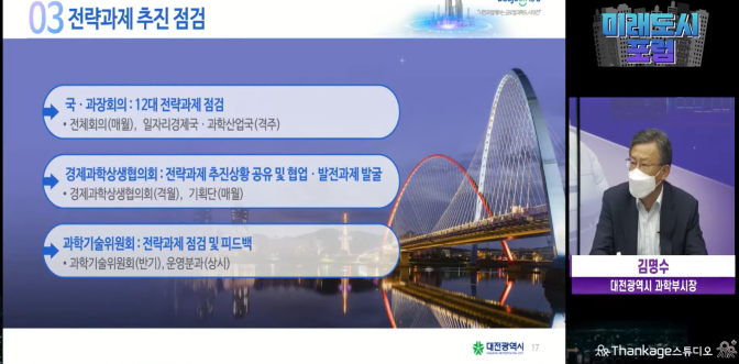 <town hall meeting - Future City Forum> is an online networking forum launched in 2019 to discuss the vision of the city with politicians, citizens, businessmen, and academic experts putting their heads together under the theme of poets who have a great influence on the lives of citizens such as technology, industry, population, environment, education, culture, and policy. The Future City Forum consists of real-time voting games through a two-way platform that allows citizens to participate unlimitedly, focusing on broadcasting live on the Internet for efficient communication of large-scale participants. It avoids presentations and discussions centered on some intellectuals, politicians, and civil society organizations, and looks at the future of the city on the premise of active participation of citizens without restrictions. It is a participatory governance broadcast format that communicates directly through a real-time two-way communication platform, and is a representative model for civic participatory town hall meetings